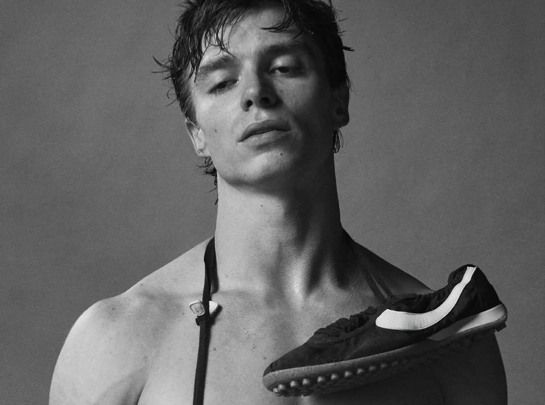 В кампейне, снятом Оливером Хэдли Пирчем, Николас Александр Чавес, сыгравший главную роль в сериале Netflix «Монстры: История Лайла и Эрика Менендеса», демонстрирует кроссовки Moon Shoe в танцевальной студии и на открытом воздухе.