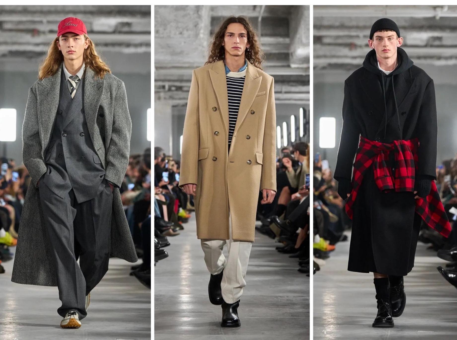 Коллекция отличается уверенными силуэтами с естественными объемами и ярко выраженным «парижским характером». В мужской линии Александр Маттиусси играет не только в кубик Рубика, но и заигрывает с пропорциями: длинные, растянутые формы соседствуют с более короткими и чистыми линиями, а структурированный объем становится «текучим» в движении. Фирменные баллонные формы и оверсайз-верхняя одежда доминируют на подиуме, подчеркивая долговечность и вне-временное качество этих вещей. Цветовая палитра особенно насыщенная: элегантные нейтральные оттенки дополнены яркими акцентами изумрудного, шафранового, королевского синего и различных вариаций красного, а также более мягкими оттенками небесно-голубого и ванильного.