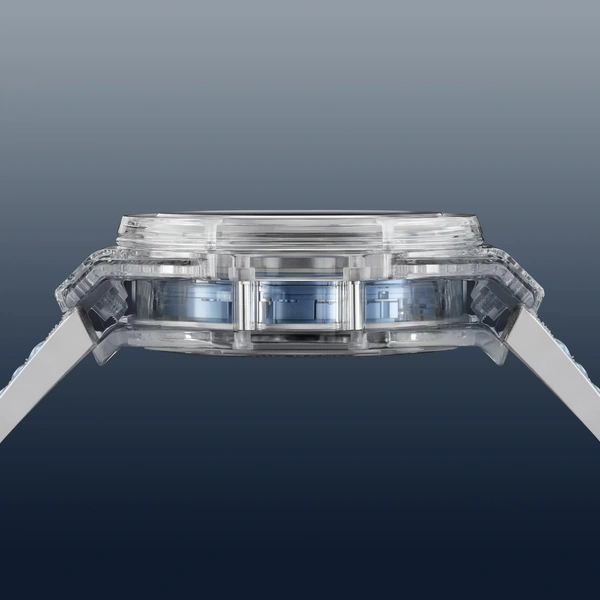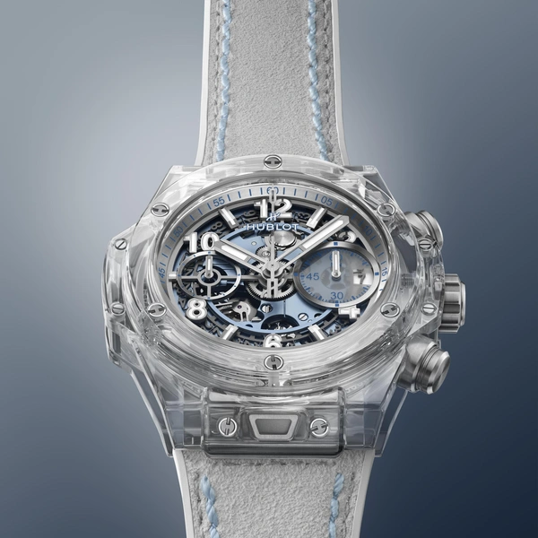 Коллекция включает две версии часов: Big Bang Unico Winter Sapphire, выполненную из прозрачного искусственного сапфира, и Big Bang Unico Winter Titanium Ceramic — из легкого титана с белым керамическим безелем. Первая лимитирована 30 экземплярами, вторая — 200. Обе модели получили корпус диаметром 42 мм и систему One Click, позволяющую менять ремешок за секунды. В комплект входят ремешки из телячьей кожи холодного белого или голубого оттенка с каучуковой подкладкой, что делает переход от дневного образа к вечернему максимально быстрым.