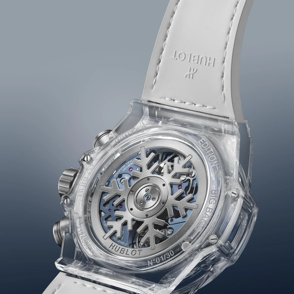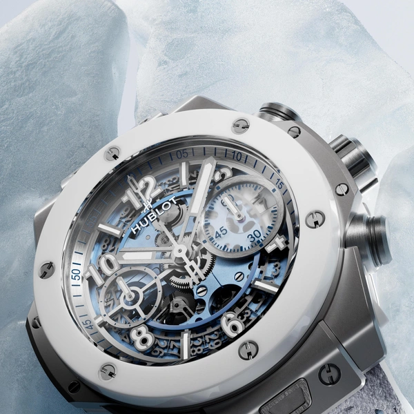 Hublot официально представил зимние Big Bang Unico — модели, которые бренд описывает как визуальное олицетворение тишины морозного утра и динамики горного отдыха. Ледяная прозрачность искусственного сапфира, холодный блеск титана, белая керамика и уникальный ротор в форме снежинки формируют эстетику коллекции, созданной для тех, кто воспринимает зиму как сезон энергии, динамики и чистоты.