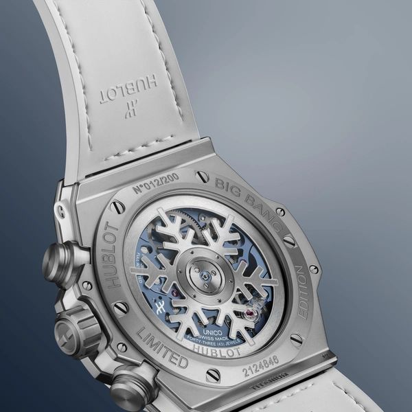 Уникальный элемент обеих моделей — ротор, выполненный в виде снежинки и видимый через прозрачную заднюю крышку. Это не просто игривая декоративная деталь, а часть конструкции калибра Unico HUB1280. В эстетике Hublot такой ход подчеркивает связь инженерии, технического вызова и символизма — механическая деталь превращается в полноценный графический элемент, не теряя своих функций. Внутри каждого Big Bang Unico Winter установлен фирменный автоматический механизм Unico HUB1280.