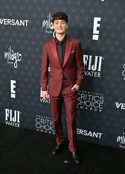 На церемонии Critics Choice Awards 2026, прошедшей 4 января в в Санта-Монике, Ноа Шнапп появился в одном из самых элегантных мужских образов вечера. Для своего первого выхода после финала сериала «Очень странные дела» актер выбрал бордовый костюм John Varvatos с двухцветными остроконечными лацканами — сдержанный по крою, но насыщенный по цвету и смыслу.