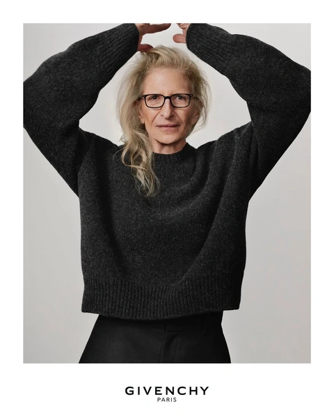 Главной сенсацией стало появление 76-летней Энни Лейбовиц. Легендарный американский фотограф сменила привычную камеру на серый укороченный свитер и темные брюки, позируя перед объективом Кольер Шорр.