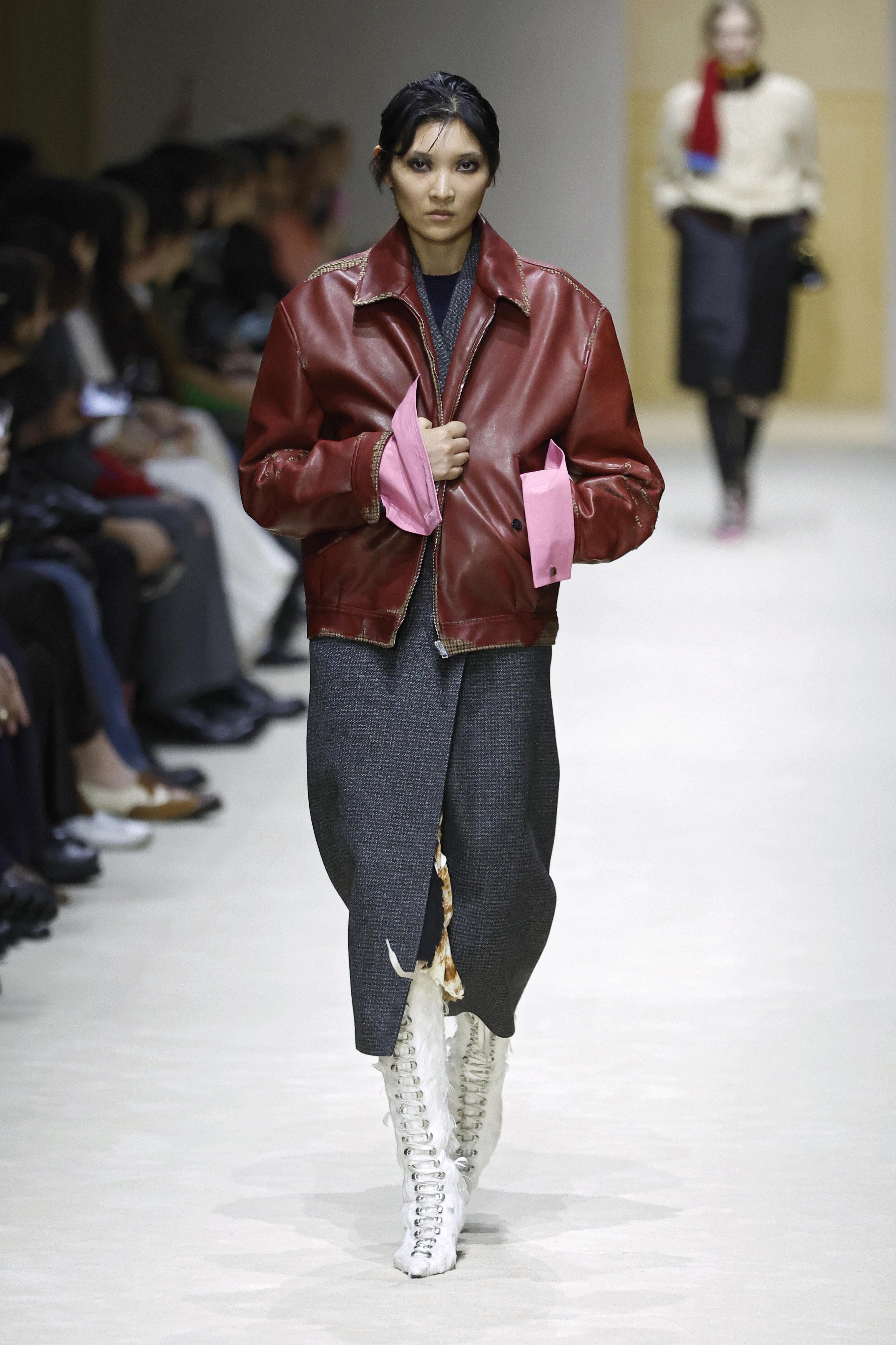 Раф Симонс добавил в коллекцию «пожившие» фактуры: кашемир выглядит слегка скатанным, кожа — потертой, а края некоторых вещей — необработанными. Это не небрежность, это имитация истории. Дизайнеры буквально продают нам ощущение, что эти вещи были с вами всегда, а не куплены вчера по списку трендов.