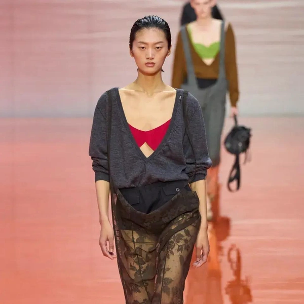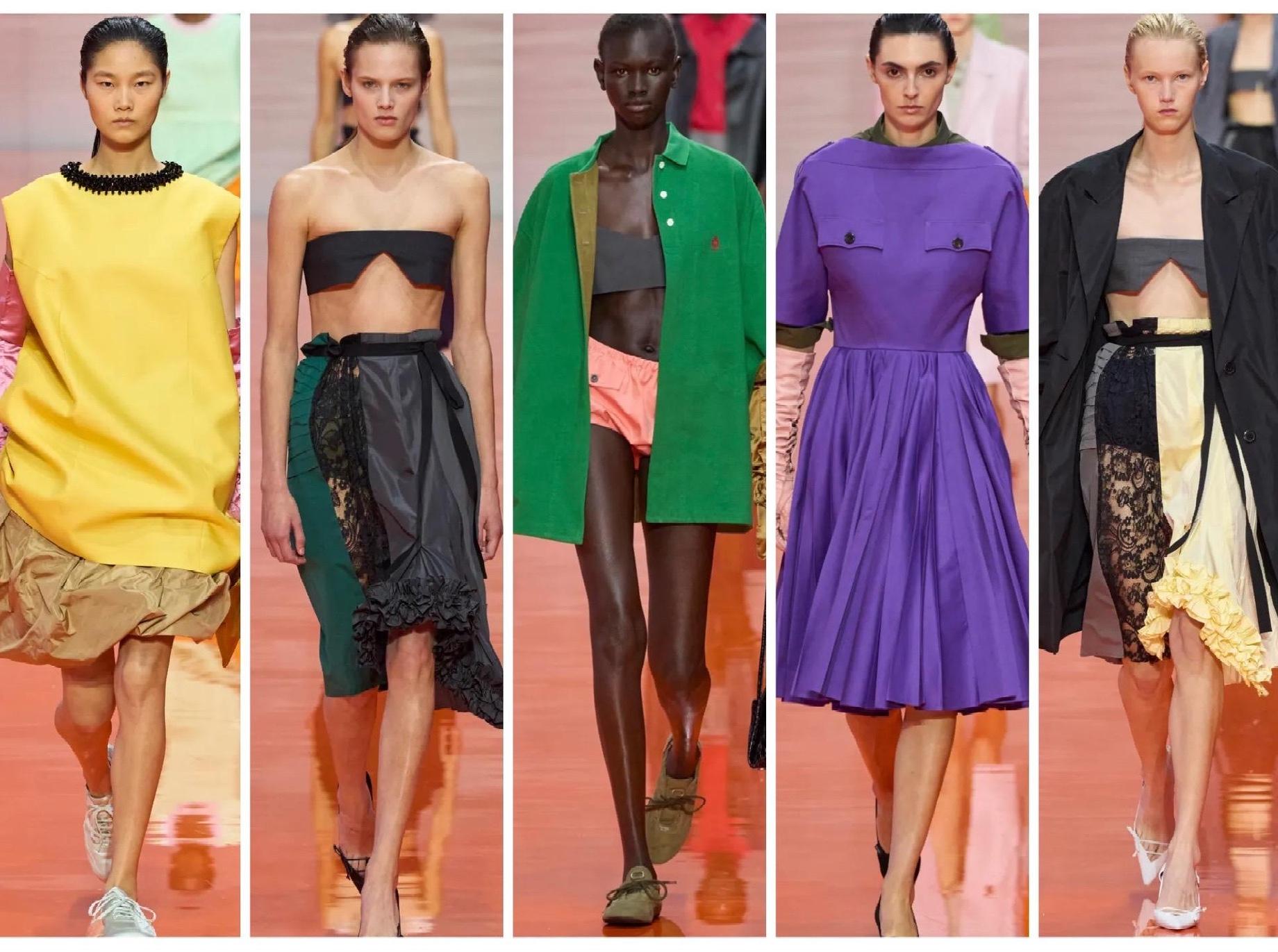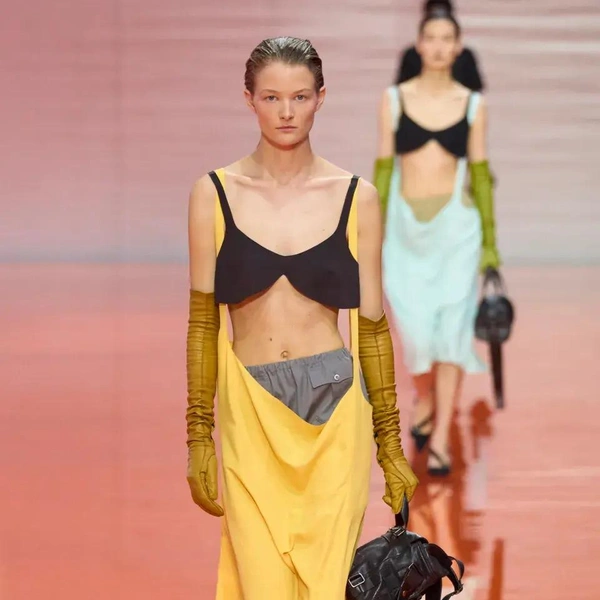 В отличие от других миланских подиумов, где бра-топы выглядели функционально, у Prada они превратились в невесомые куски шифона и обрезы, оставшиеся от пошива мужского костюма в ателье. Некоторые бра были похожи на перевернутые воротники, прикрепленные к груди, которые приподнимались при движении.