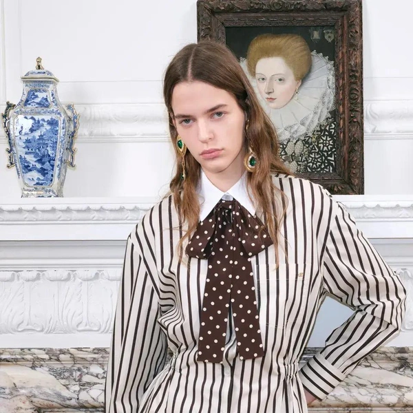 Коллекция Valentino pre-fall 2026 представлена в формате лукбука и снята в одном из итальянских палаццо. Самое поразительное — выглядит она заметно более спокойной и минималистичной, чем его предыдущие высказывания для Дома (и на всех предыдущих местах работы). Лаконичный крой, мягкий макияж, аккуратный стайлинг — звучит почти как оксюморон для автора.