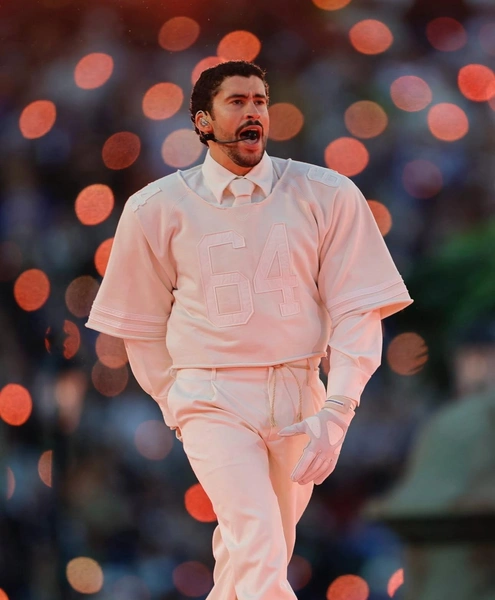 На этом фоне особенно показательно выглядел выбор костюма музыканта. В 2025 году Кендрик Ламар заставил весь мир говорить своих о узких джинсах-клеш Celine. Но Bad Bunny явно обошел коллегу-предшественника по части сенсаций и вирусному эффекту.
