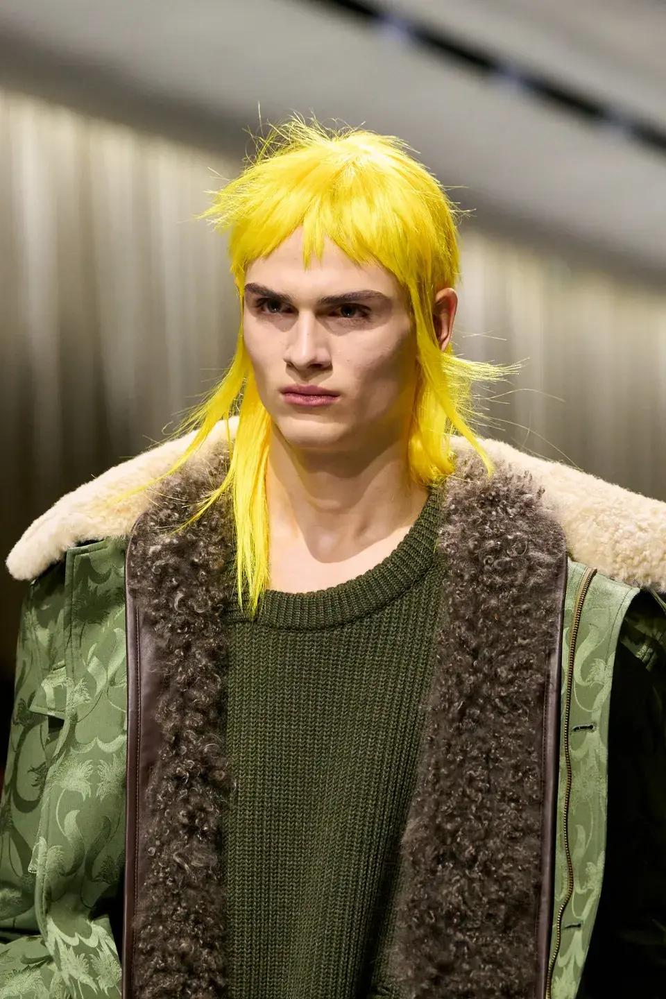 Но самым обсуждаемым элементом показа стали флуоресцентно-желтые парики, созданные стилистом по волосам Гвидо Палау. В них на подиуме появилась примерно половина моделей. В сочетании с объемными пуховиками, асимметричными юбками и блестками они придавали шоу панковский, почти анархичный характер. Они были выбраны как анти-норма, как элемент, который невозможно игнорировать. Но именно этот элемент шоу возмутил критиков и заставил даже преданных фанатов Андерсона сидеть весь показ с открытым ртом. Самый частый комментарий в Сети — парики сравнили с прической популярного в нулевые главного персонажа из мультика «Эй, Арнольд».
