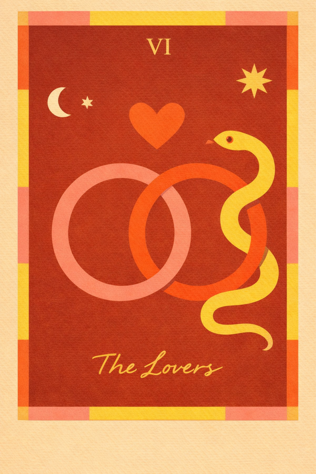 Близнецы — двойственный знак, управляемый Меркурием, богом коммуникаций, и ассоциируются с картой Влюблённые. Этот аркан подчёркивает важность отношений и связей и символизирует выбор между двумя путями — как это было с Адамой и Евой у Древа Жизни и Древа Мудрости, которые изображены на карте.