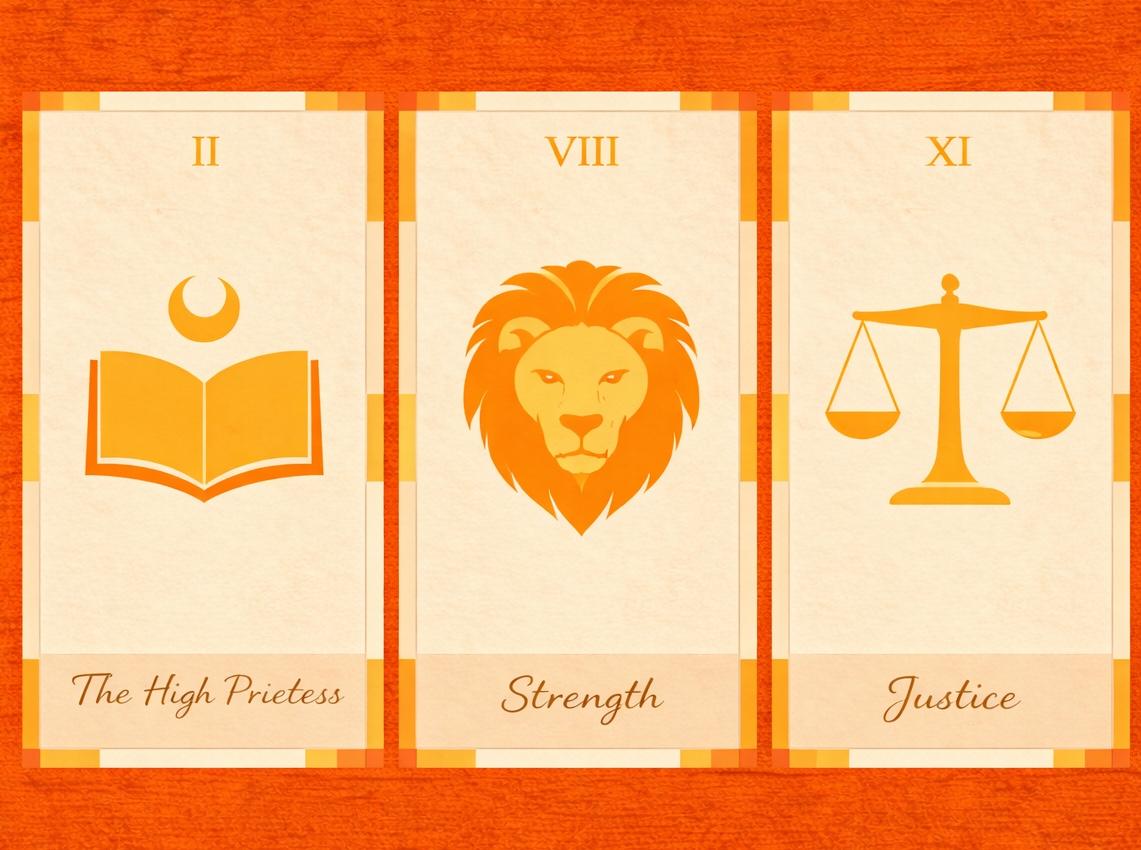 Весы, знак баланса и гармонии, связаны с арканом Справедливость. На карте изображены весы и меч, что подчеркивает стремление Весов к честности и равновесию. Этот аркан учит находить гармонию в себе и мире вокруг, достойно реагировать на несправедливость и оставаться верным своим жизненным принципам.