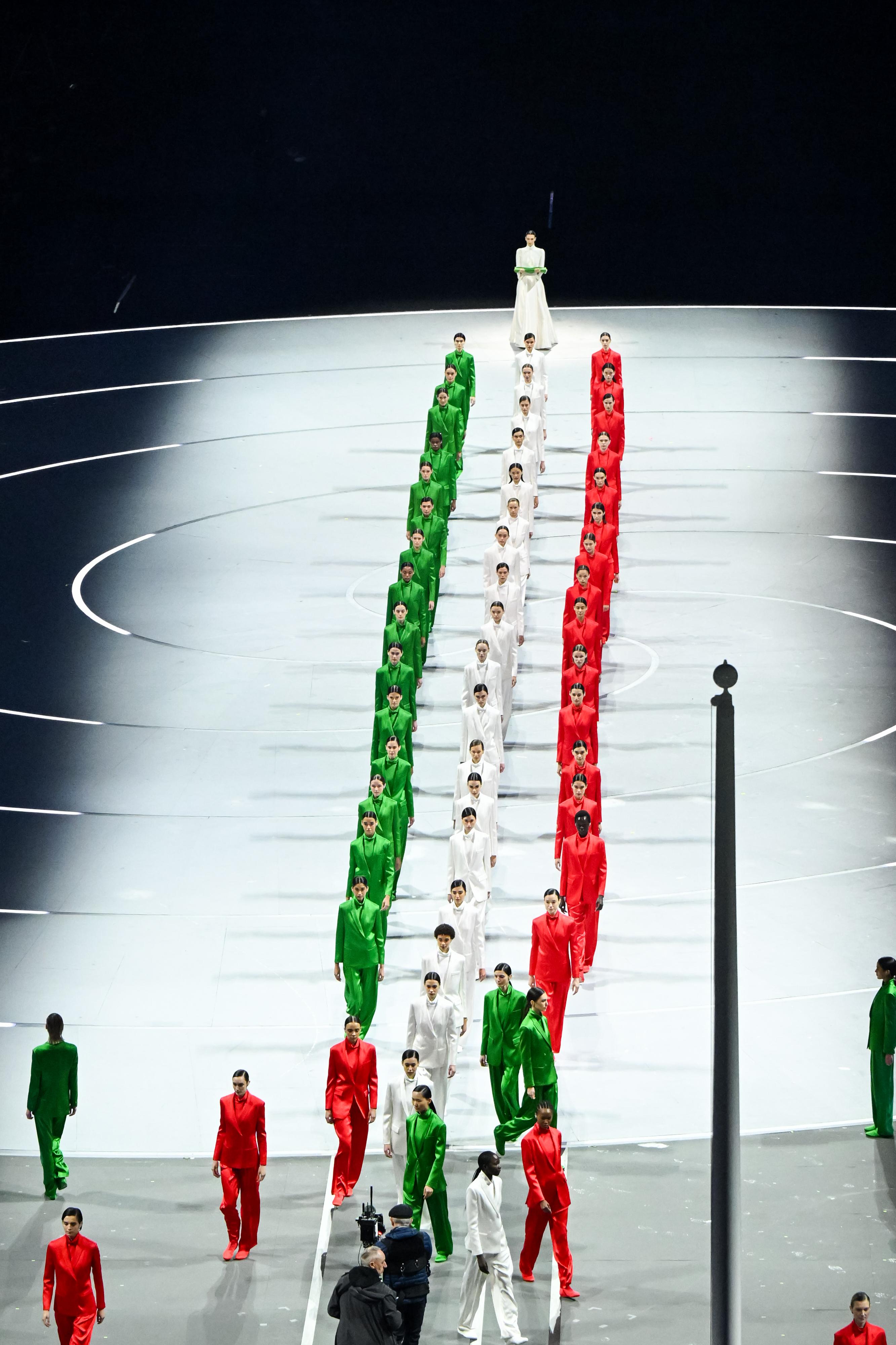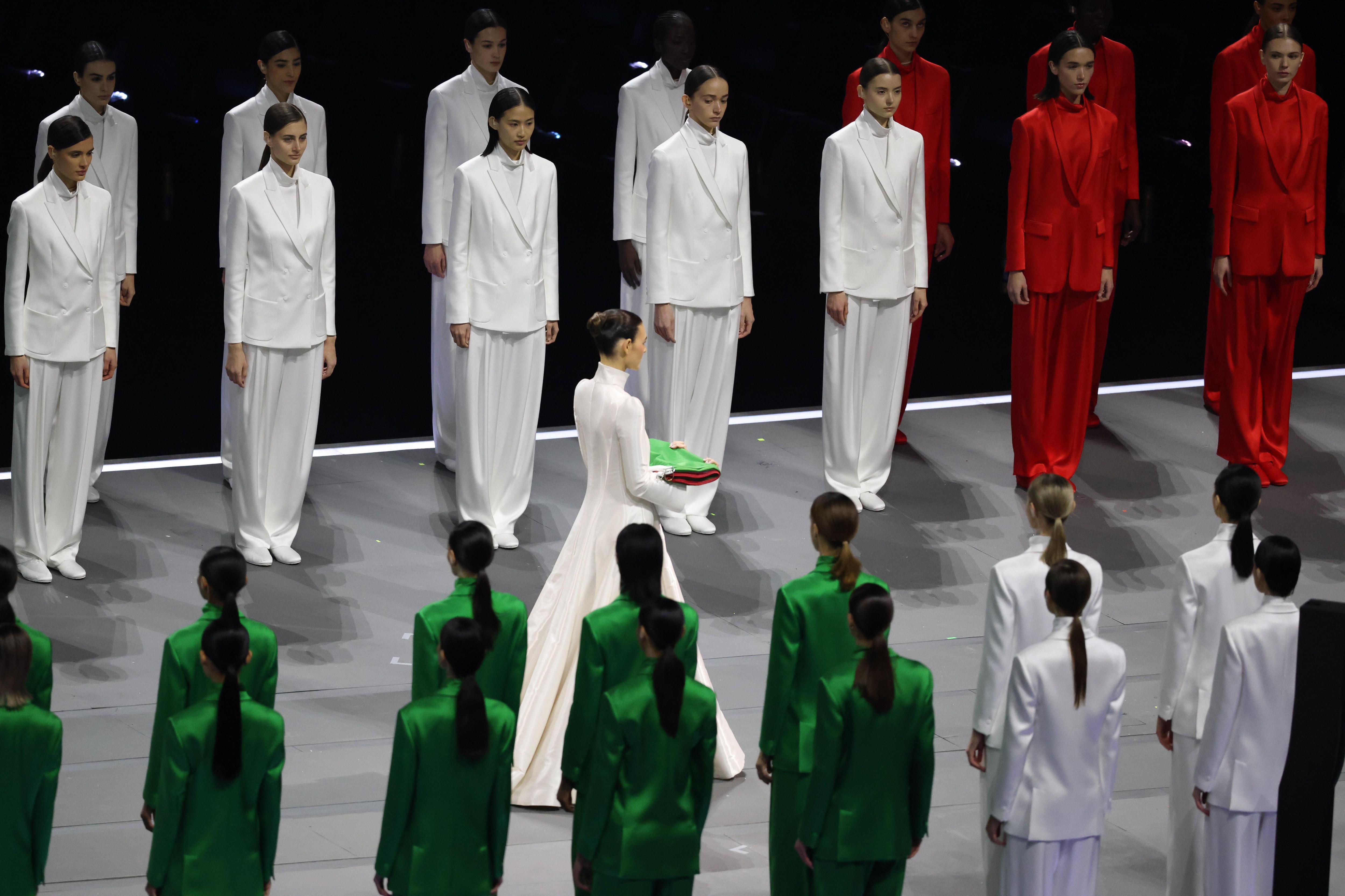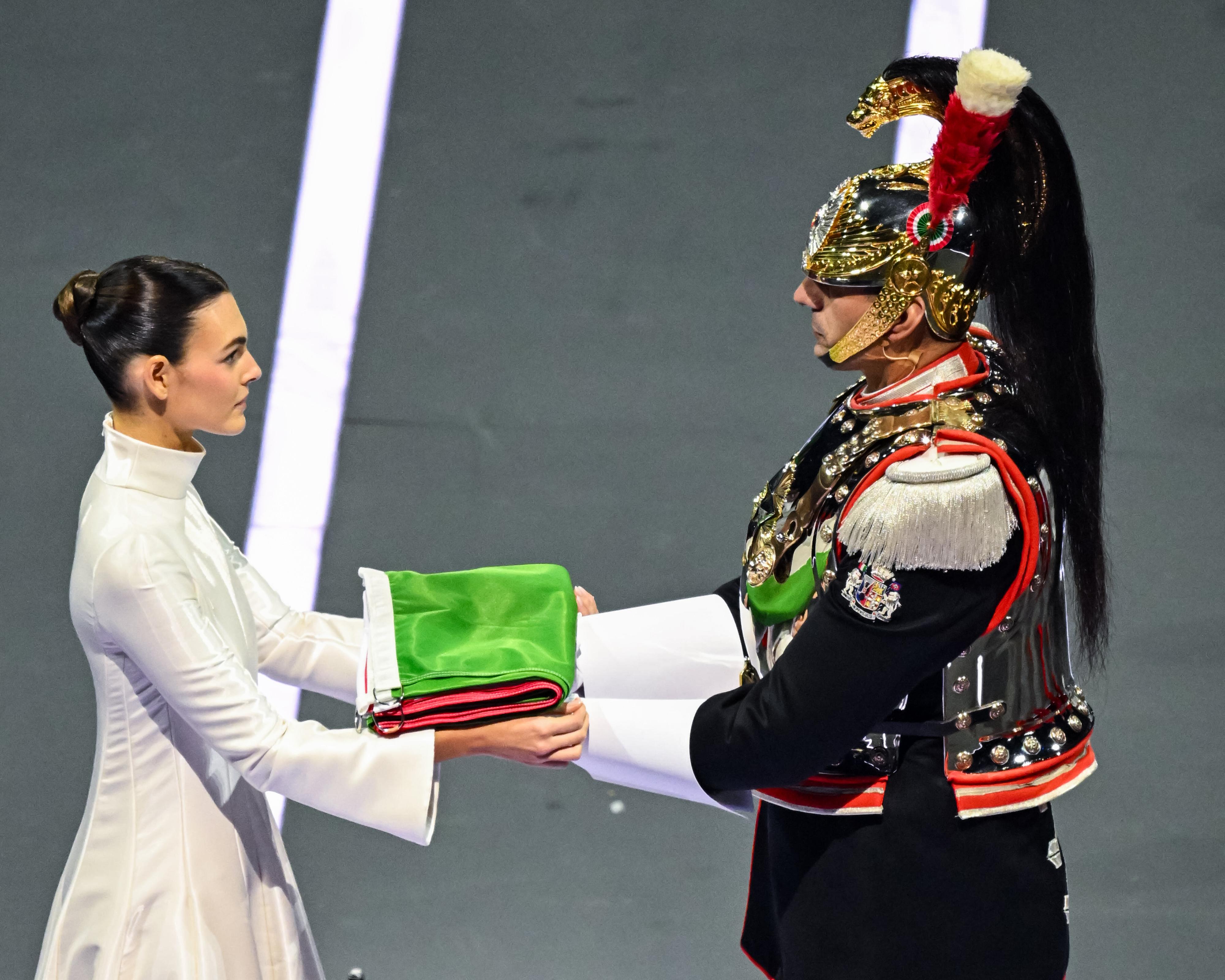 Церемония открытия стала и данью памяти великому кутюрье Джорджо Армани, который ушел из жизни осенью 2025 года. Организаторы устроили модный оммаж дизайнеру, отшив платья. костюмы, основанные на одном из его последних эскизов. По подиуму прошли три группы моделей в образах зеленого, белого и красного цветов, превратив итальянский флаг в живую, движущуюся модную композицию. Этот момент стал коллективным жестом признания роли Армани в формировании образа современной Италии и ее элегантности. Кроме того, EA7 Emporio Armani на протяжении многих лет является официальным экипировщиком итальянской сборной по зимним видам спорта. Флаг Милана как символа современной креативной Италии несла супермодель Виттория Черетти — возлюбленная Леонардо Ди Каприо — в платье, напоминающим свадебный образ.