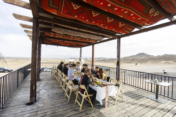 На следующий день колонна из 14 автомобилей Porsche отправилась в автопутешествие к Чарынскому каньону протяженностью около 200 км, где гостей ждал обед в специально организованном кемпинге.