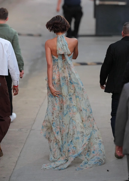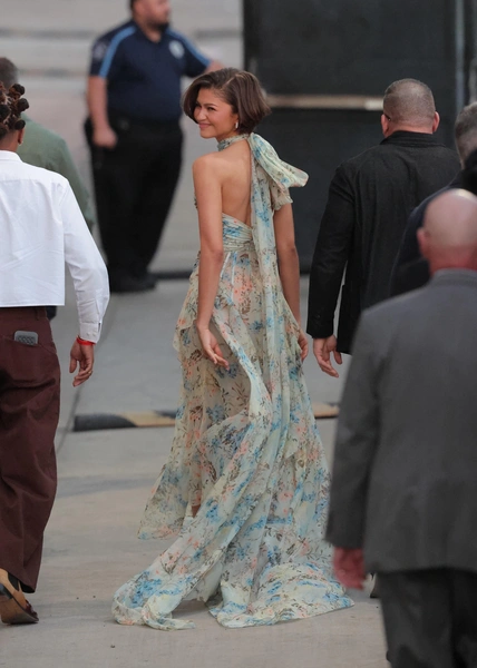 Зендея пришла на шоу Jimmy Kimmel Live! с тремя поводами для разговора: новым фильмом, недавней свадьбой и модным образом. Актриса появилась на программе в платье McQueen — длинном, полупрозрачном, с цветочным принтом в пастельных тонах. Лиф на бретелях-халтер, многослойные рюши по подолу, невесомая ткань, которая двигалась вместе с ней. Изысканно и чувственно. Примечательно, что, несмотря на весеннее настроение этого образа, платье было показано всего неделю назад в осенней коллекции бренда на Неделе моды в Париже. К платью Лоу Роуч подобрал для своей подопечной бледно-голубые туфли-лодочки с заостренным носом (другой обуви для этого стилиста будто не существует).