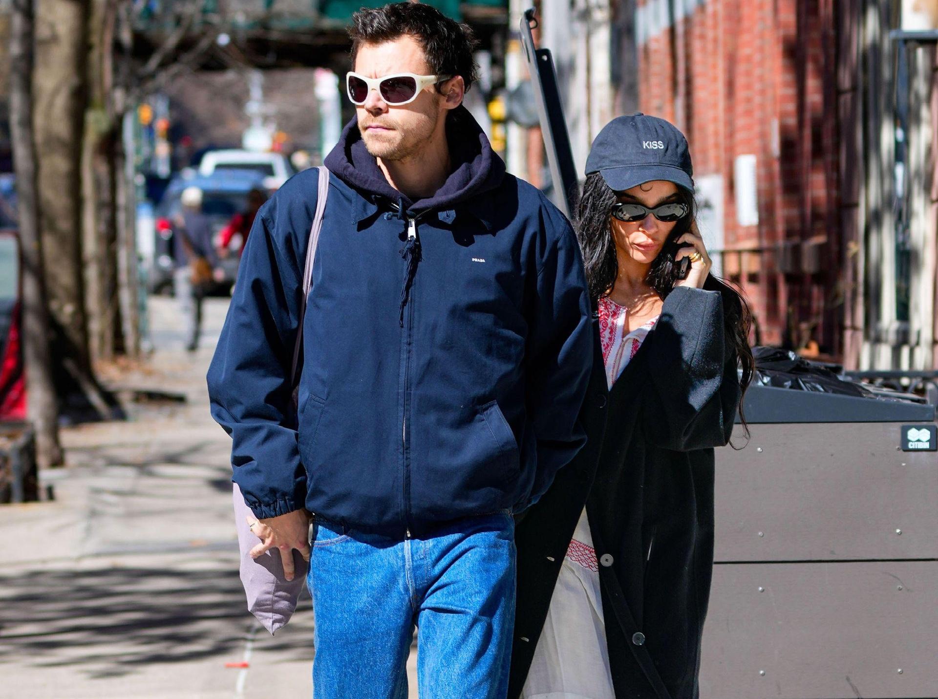Гарри и Зои были одеты в синие тона: Стайлс в темно-синей куртке Prada джинсах и кроссовках Adidas Samba (его любимая модель в последнее время), а Кравиц в такой же темно-синей бейсболке с надписью KISS — мерче в поддержку нового альбома певца Kiss All the Time. Disco, Occasionally.