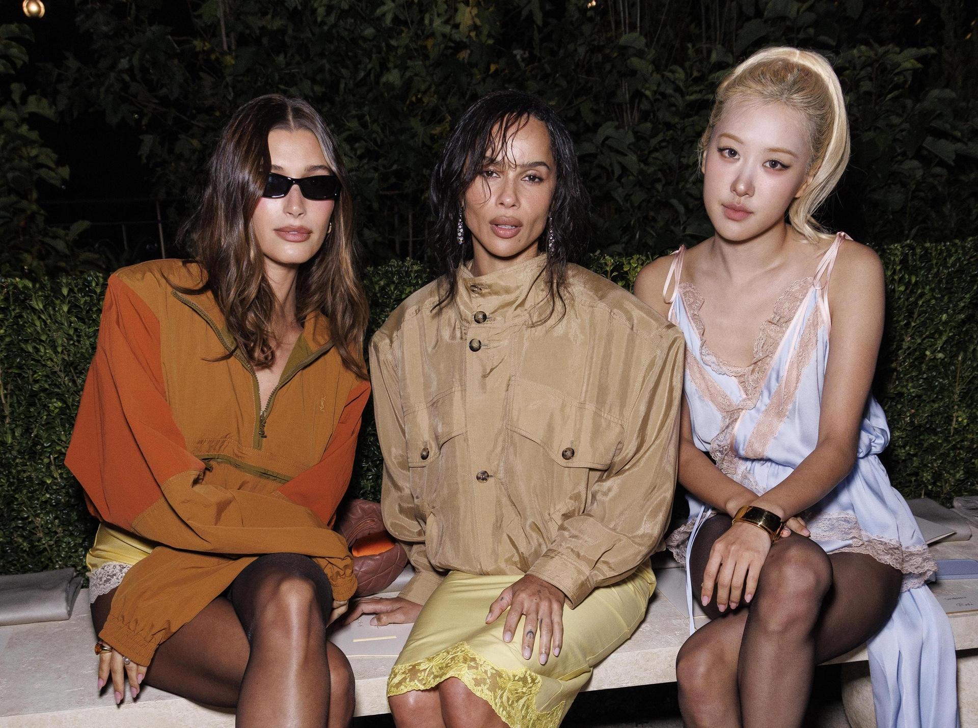 Другая верная муза Дома и новая возлюбленная Гарри Стайлса, Зои Кравиц, сделала ставку на более «утопленный» осенний образ и вышла в свет в хаки-бомбере, дополнив его юбкой-комбинацией нежного желтого цвета. Айдол Розе из BLACKPINK привлекла внимание публики голубым бельевым комбинезоном с длинным шлейфом.