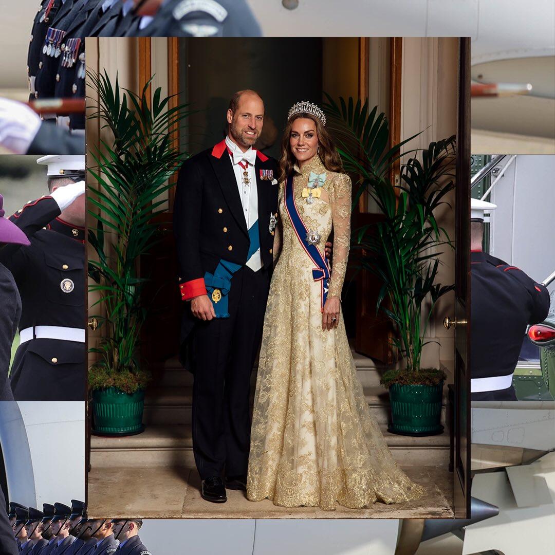 Отдельное место занимает официальный семейный портрет: принц Уильям и Кейт Миддлтон запечатлены во время одного из государственных мероприятий. Формальные наряды и выверенная композиция кадра напоминают о традициях и преемственности, которые остаются ключевыми для монархии.