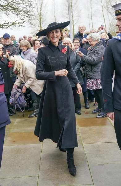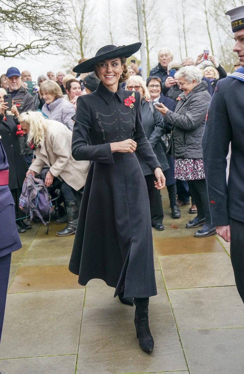 Принцесса Уэльская, которая по этому случаю надела шляпку от Джейн Тейлор, возглавила традиционную двухминутную церемонию молчания в 11 утра, отдав дань уважения солдатам, отдавшим свои жизни в военных конфликтах. Затем Кэтрин возложила венок к Мемориалу Вооруженных сил, встретилась с ветеранами, которые присоединились к ней на церемонии.
