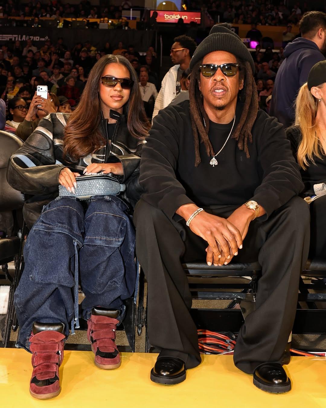Jay-Z посетил четвертьфинальный матч Кубка НБА между «Лейкерс» и «Сан-Антонио Сперс вместе со своей дочерью Блю Айви Картер.
