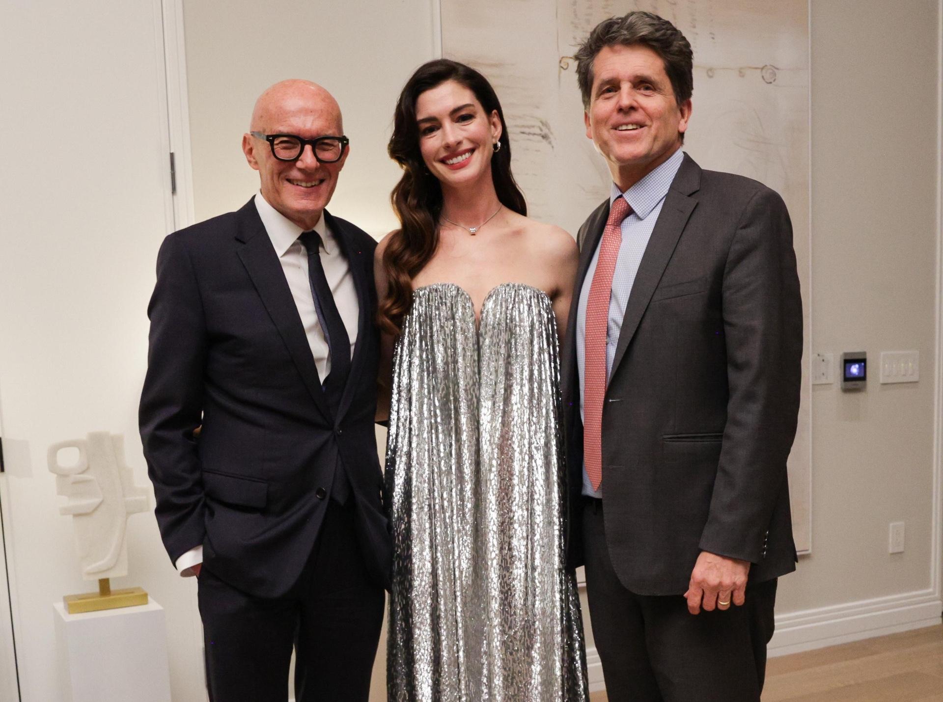 На светском мероприятии Bvlgari x Save the Children Энн Хэтэуэй появилась в образцовом вечернем образе, который хочется повторить в новогоднюю ночь. Настолько блистательно выглядела звезда! Серебряное платье в пол без бретелей с элегантной и свободной драпировкой Stella McCartney: крой — минималистичный, сияние — на максимуме. Как и полагается амбассадору Bvlgari, выход актрисы дополнили аксессуары и украшения итальянского Дома — металлизированный клатч Serpenti и утонченные драгоценности из коллекции, созданной в поддержку благотворительной инициативы.