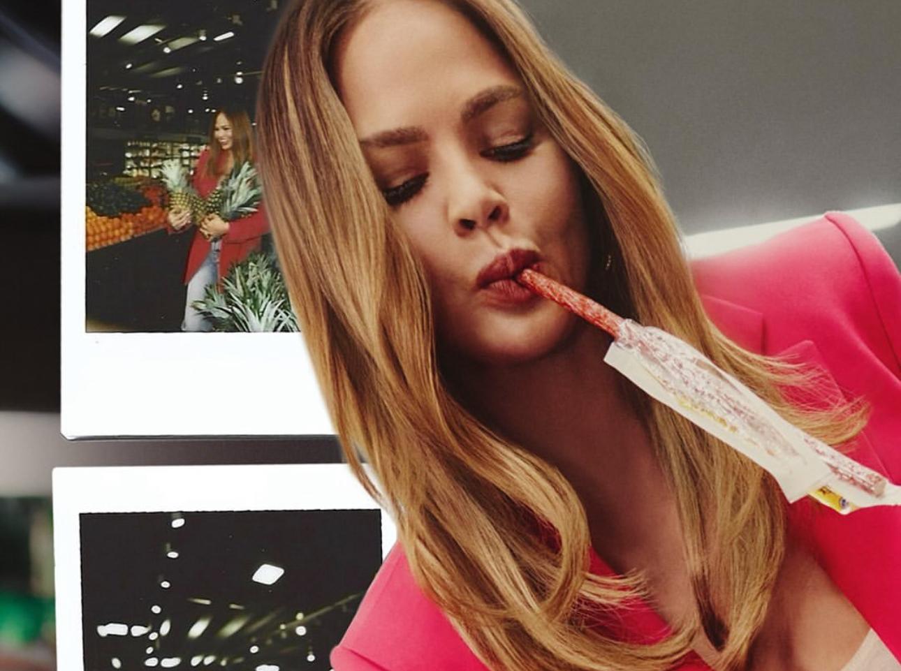 Крисси Тейген признается, что спорт никогда не был ее страстью, зато любовь к еде осталась неизменной: у кровати у нее стоит «ящик с конфетами», а муж каждую ночь готовит ей «сэндвич перед сном».