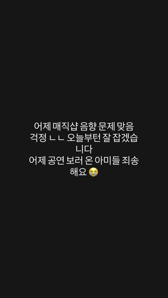 «Вчера на „Magic Shop“ действительно были проблемы со звуком. Не переживайте, с сегодняшнего дня все будет исправлено. Простите, ARMY, которые пришли на вчерашнее выступление», — написал артист, сопроводив пост грустным эмодзи.