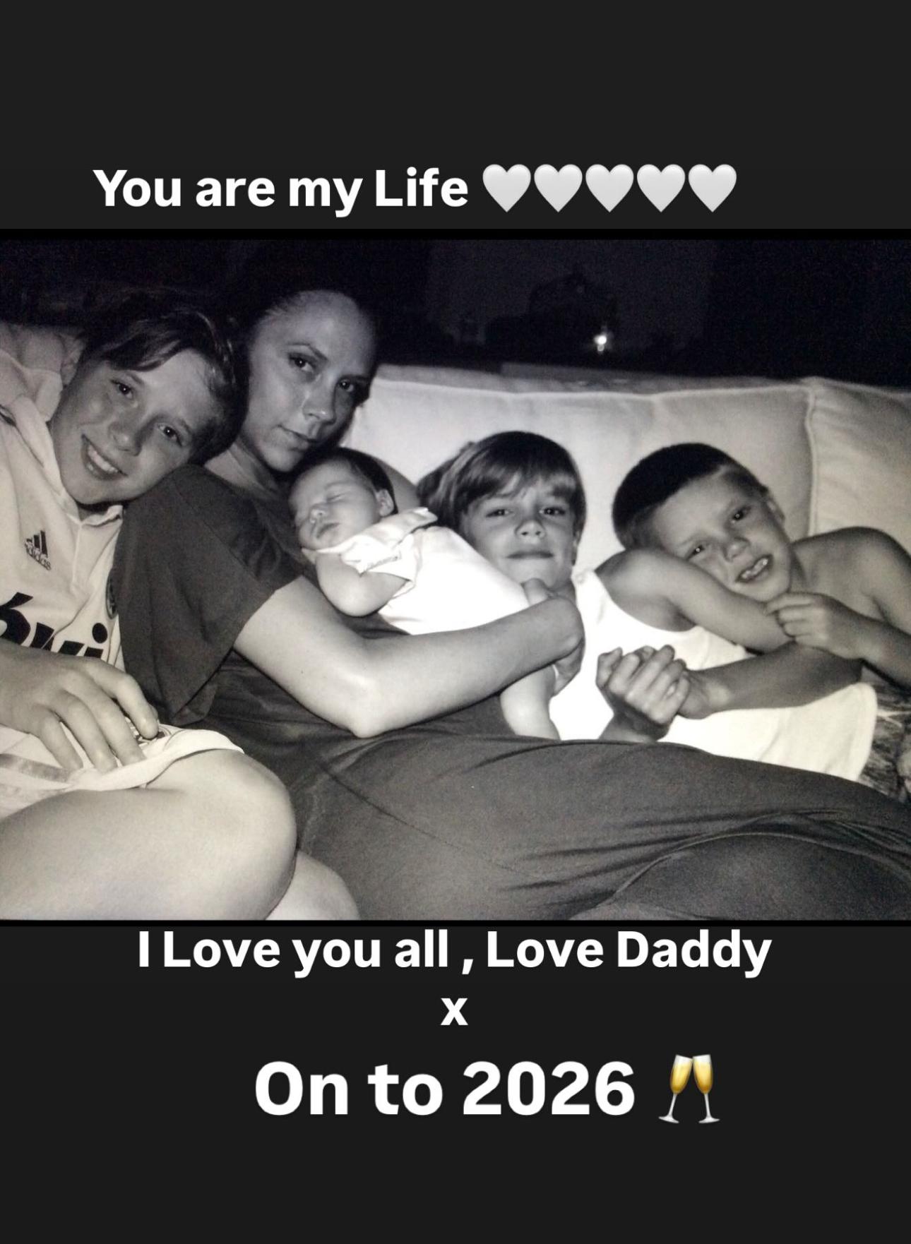 В новогоднюю ночь Дэвид Бекхэм опубликовал эмоциональное обращение к своей семье, которое многие расценили как самый откровенный жест примирения за последний год. В серии архивных и новых фотографий бывший капитан сборной Англии по футболу назвал жену и детей «всей своей жизньюэ, впервые за долгое время включив в публикацию и старшего сына Бруклина, с которым, по сообщениям, сохраняется напряжение в отношениях.
